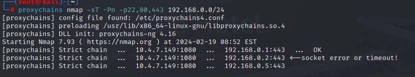 proxychains nmap -sT -Pn -p22,80,443 192.168.0.0/24