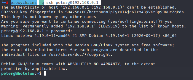 proxychains -q ssh peterg@192.168.0.1