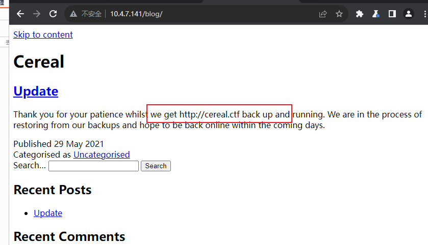 echo '10.4.7.141 cereal.ctf' >> /etc/hosts