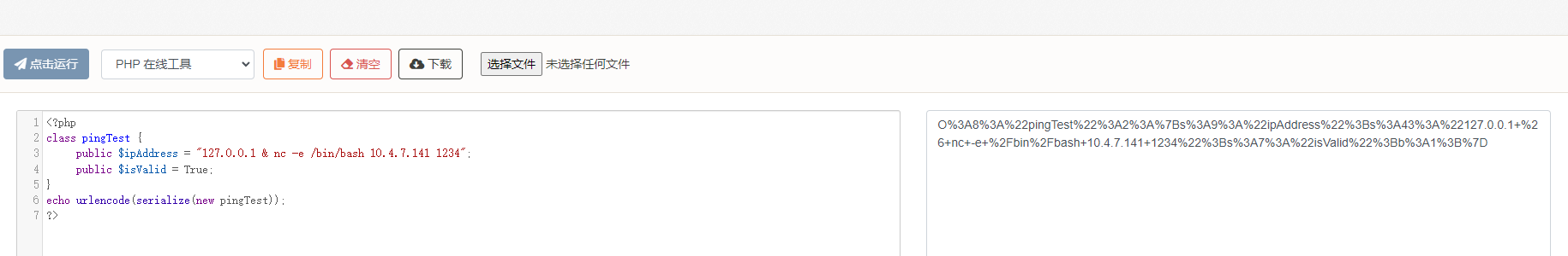 尝试在反序列化中尝试写入反弹 shell,把 ping 的地址替换成反弹 shell