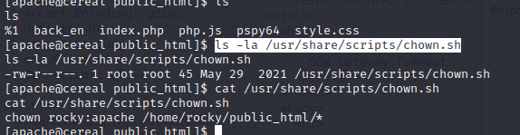 不过并没有权限修改和执行,但是这个脚本可以更改位于用户 rocky 的主目录中的文件 public_html 内容的所有者