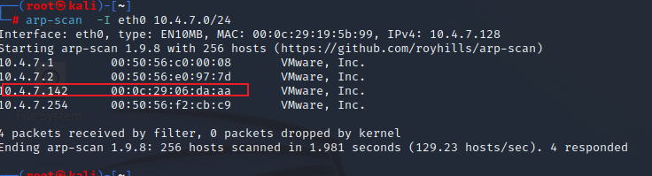 arp-scan -I eth0 10.4.7.0/24