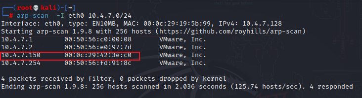 arp-scan -I eth0 10.4.7.0/24
