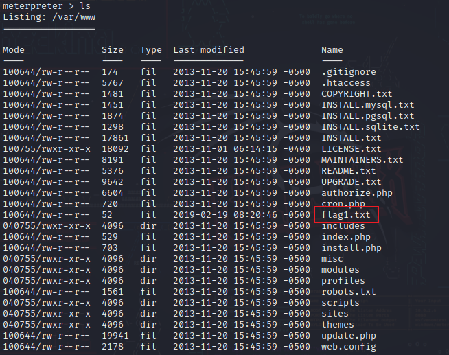 从中我们可以发现flag1.txt文件,那我们查看一下flag1.txt里面的内容: