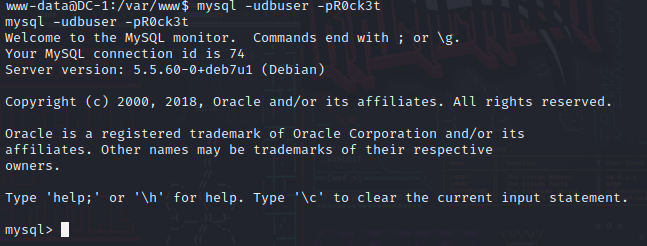 mysql -udbuser -pR0ck3t