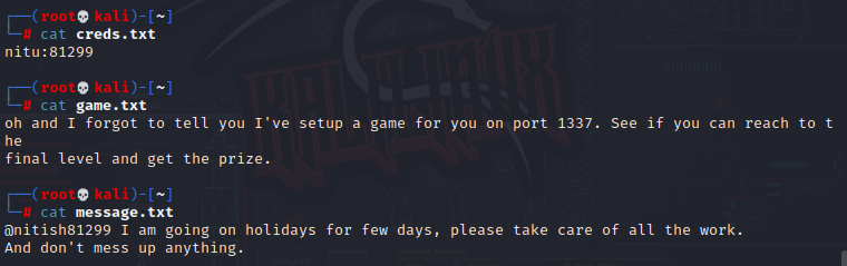 因为ssh是过滤的,联想到这三个数字可能是端口敲门的端口,用nc测试连接