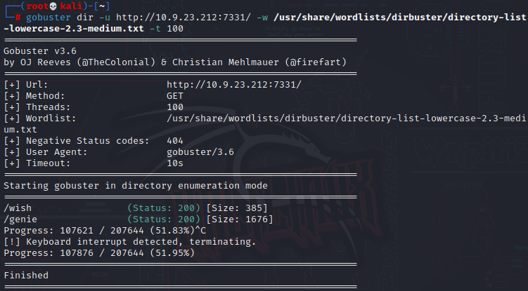 gobuster dir -u http://10.9.23.212:7331/ -w /usr/share/wordlists/dirbuster/directory-list-lowercase-2.3-medium.txt -t 100