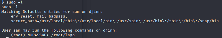 发现lago命令可以用root的身份运行,并且不需要passwd