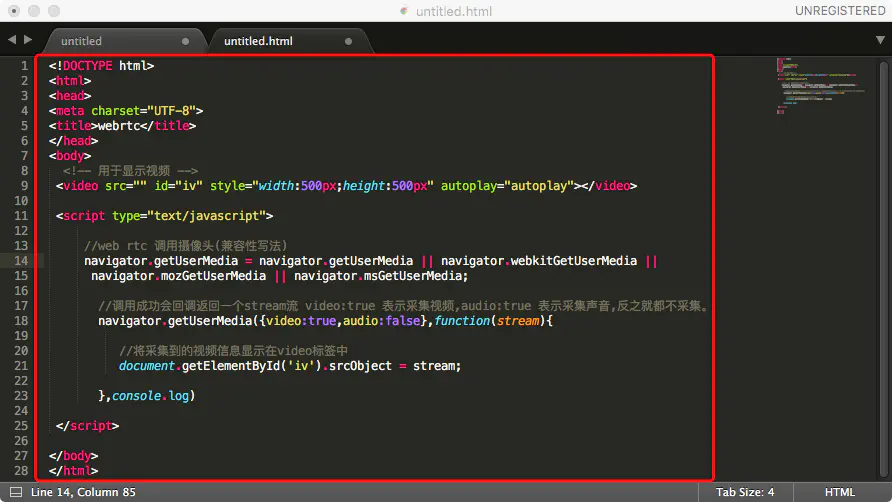 webrtc 调用摄像头并实时在浏览器中显示图像