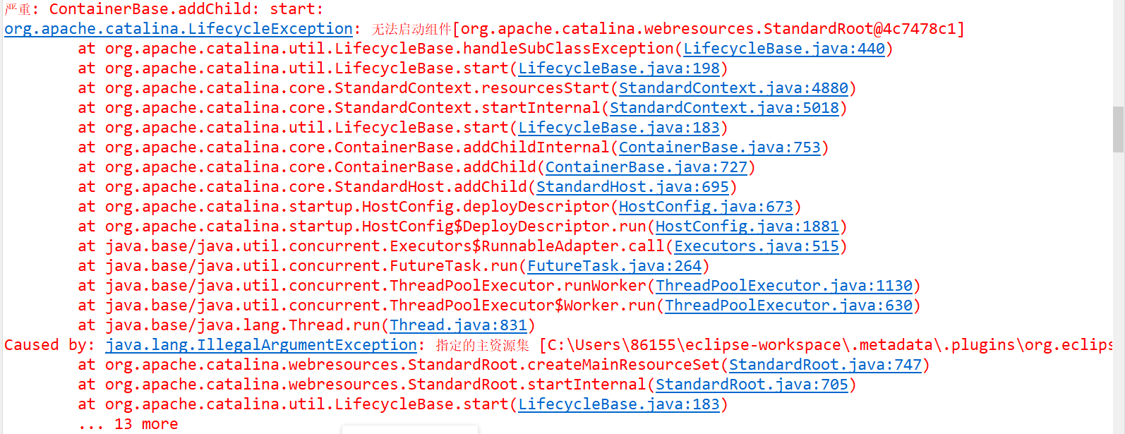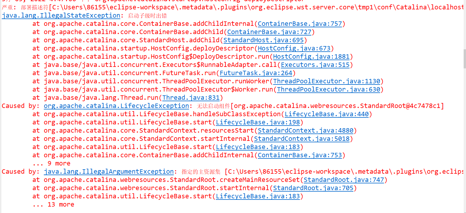 使用eclipse运行web项目时,前几次测试运行都没有出现问题,但一次运行Tomcat出现了问题