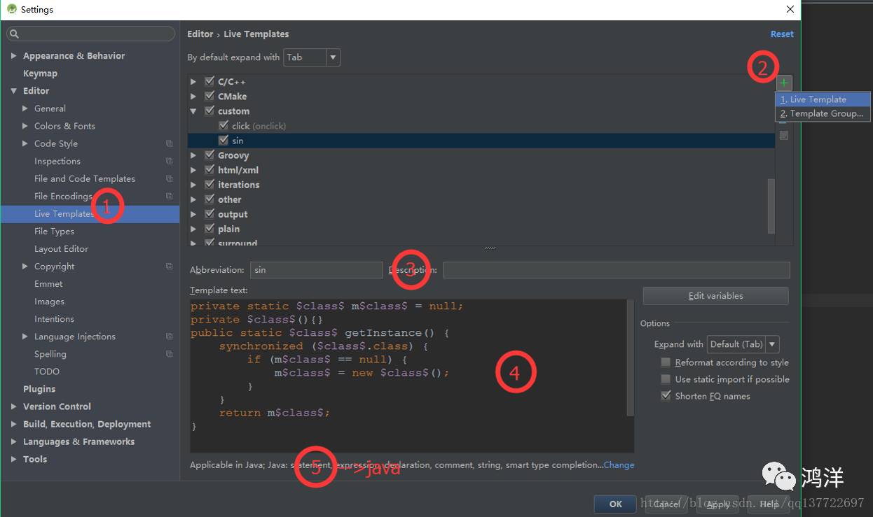 系统自带模板从两个方面讲解,全关键字型和后缀关键型,由于篇幅的原因,这里只讲解常用的一些模板,未讲解到的可以到 Settings->Editor->Live Templates中查看