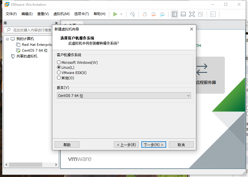 点击下一步 直到出现该页面 上者选择Linux 版本选择 centos 7 64 位