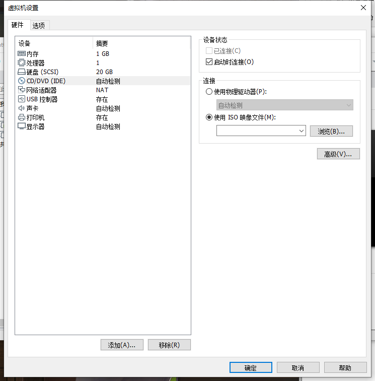 并在设置中选择第三个cd/dvd 和 点击使用iso映像文件