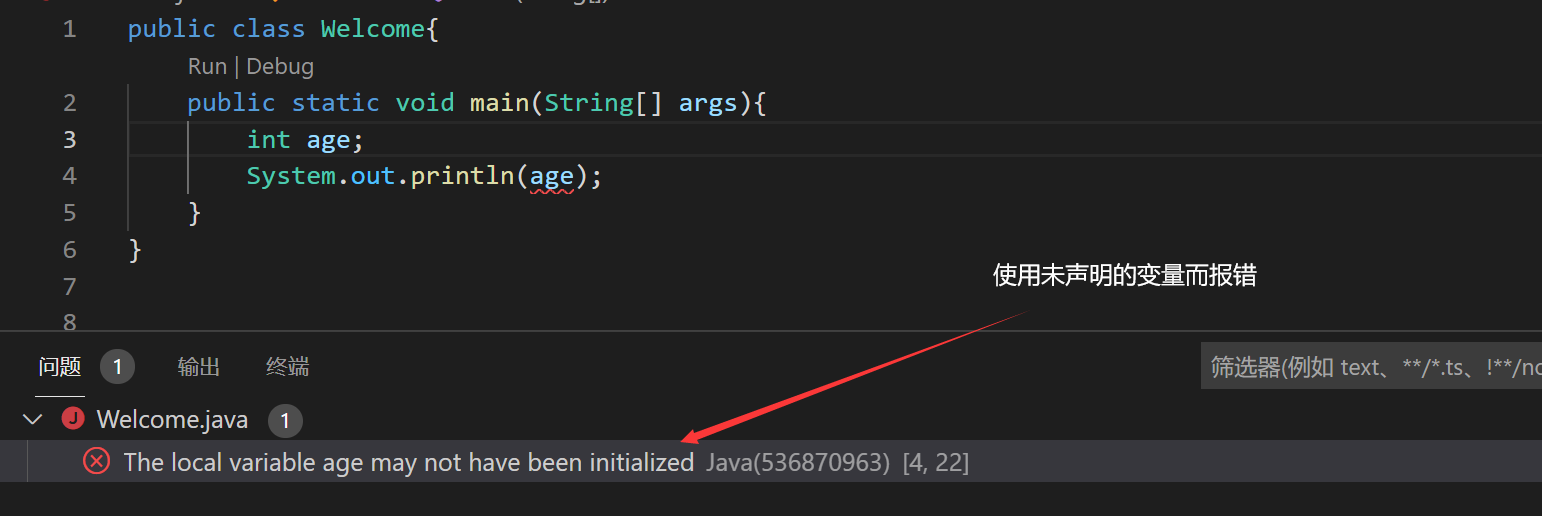 int x, y, z; // 声明但未初始化的变量, 使用前需要进行初始化