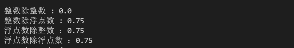 System.out.println("f为" + f); // 整型除法出现小数不存在四舍五入,只有向下取整