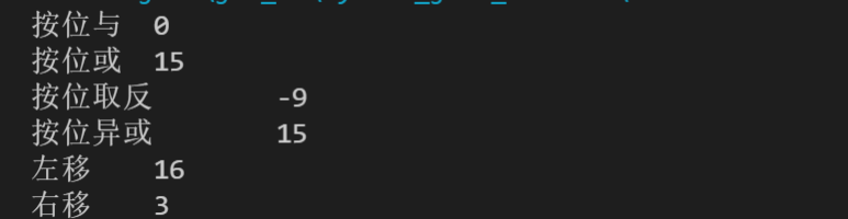 System.out.println("按位异或\t" + (a ^ b)); // 1111 相同为0,相异为1