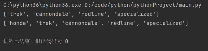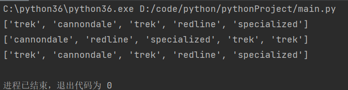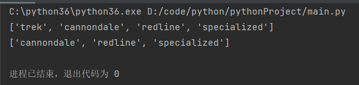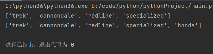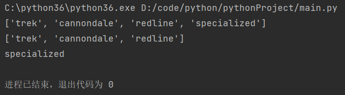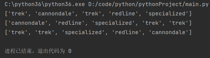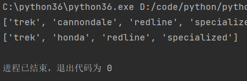 print(bycycles) #这种情况会输出方括号、逗号、单引号