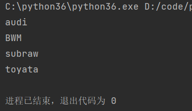 cars = ['audi', 'bwm', 'subraw', 'toyata']