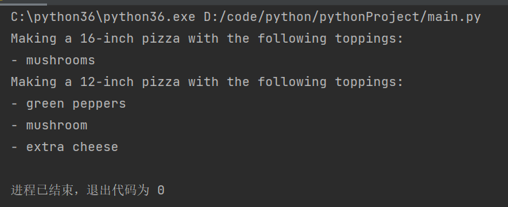 make_pizza('green peppers', 'mushroom', 'extra cheese')