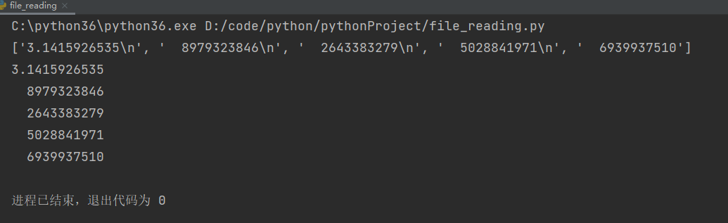 在pi_digists.txt文件目录下创建file_reading.py文件,其内容如下