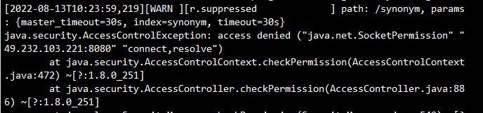java.security.AccessControlException: access denied ("java.net.SocketPermission" "49.232.103.221:8080" "connect,resolve")