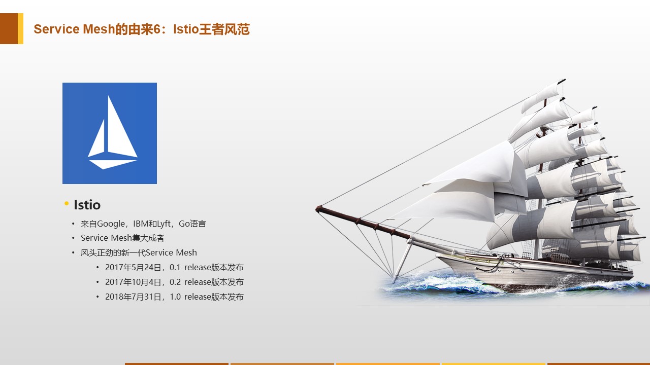 - 一个月后,2017年5月,Google/IBM/Lyft联手发布Istio 0.1版本。