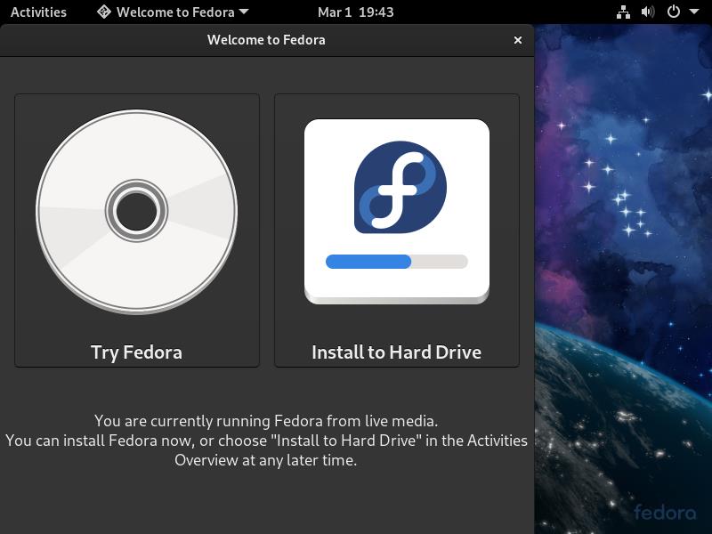 笔记本安装 Fedora-Workstation-Live 33 系统