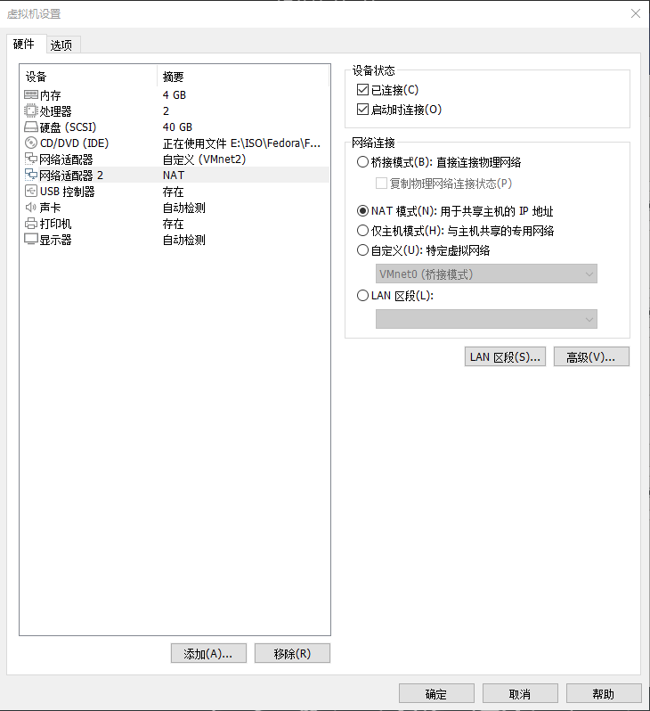 Fedora-WorkStation-Live-33 虚拟机配置网络