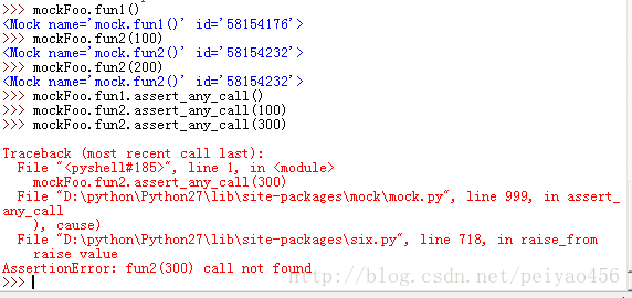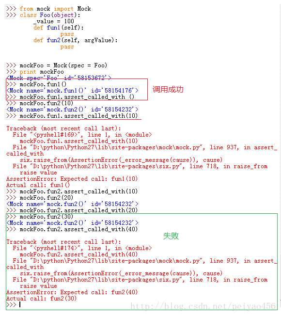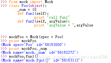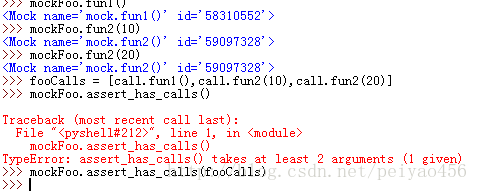 还有,仔细看你会看到,fooCall中的每个元素前边都有call来修饰,这个就是表明,call后边的是一个方法,不加call是不可以的,解释器是不知道fun1是一个方法的,为了使用call这个关键字,我们就需要引入这个模块:from mock import Mock,call。