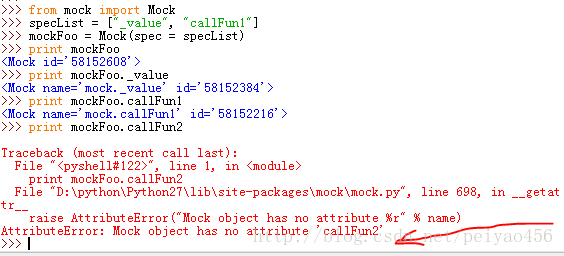 3.mock_add_spec(aSpec, spec_set = False):这个函数就是给mock对象添加一个新的属性(mock对象原来的属性就会被擦除),第二个参数是指属性是可读可写,默认是只读,如果想让其拥有写权限,可以将其设置为true.