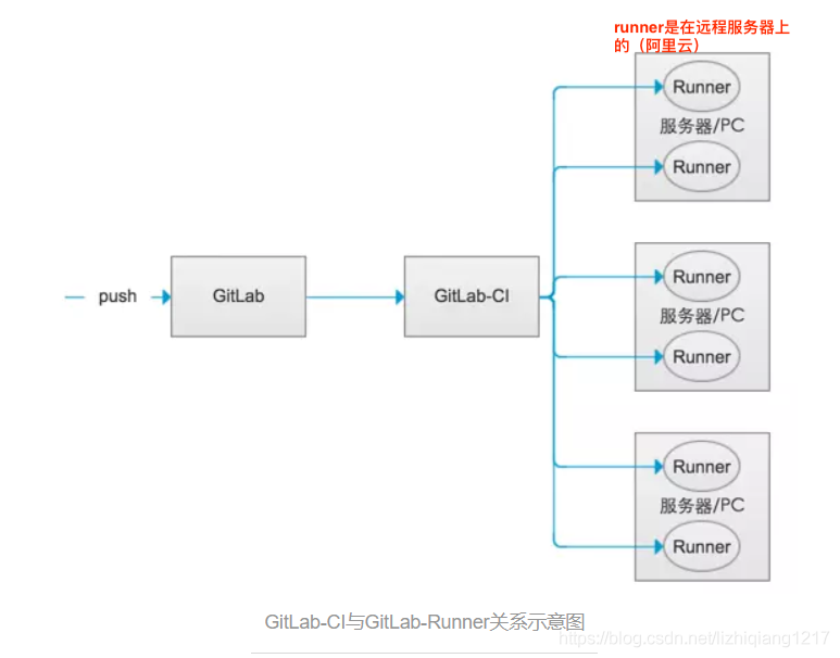 GitLab-Runner是配合GitLab-CI进行使用的。一般地,GitLab里面的每一个工程都会定义一个属于这个工程的软件集成脚本,用来自动化地完成一些软件集成工作。当这个工程的仓库代码发生变动时,比如有人push了代码,GitLab就会将这个变动通知GitLab-CI。这时GitLab-CI会找出与这个工程相关联的Runner,并通知这些Runner把代码更新到本地并执行预定义好的执行脚本。