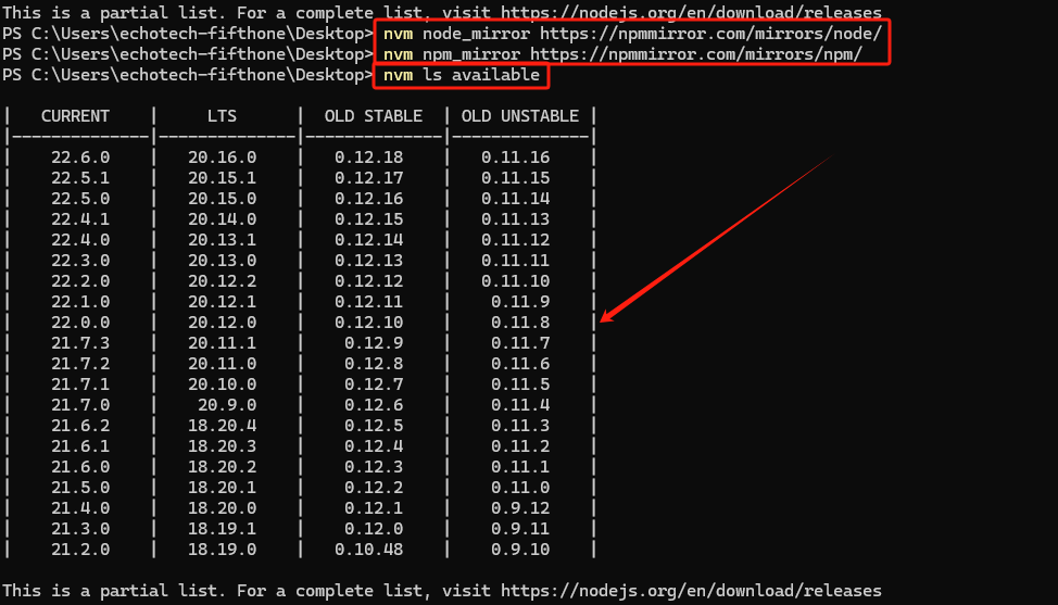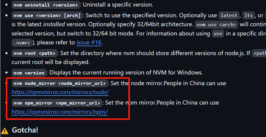 nvm node_mirror https://npmmirror.com/mirrors/node/ nvm npm_mirror https://npmmirror.com/mirrors/npm/