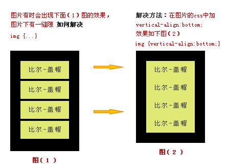 在用CSS制作网页过程中可能会碰到图片下面有空隙的问题,解决方法:在图片的css中加 vertical-align:bottom;