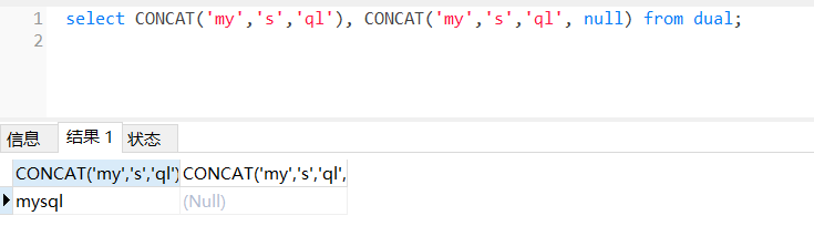 此方法可拼接多个值,如果存在一个为 【null】,则结果返回为【null】