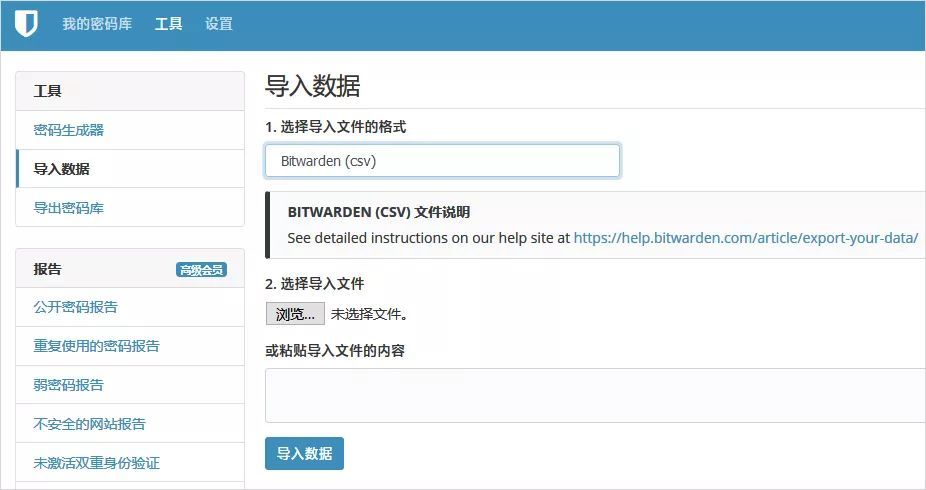 第二步:在 BitWarden 导入数据