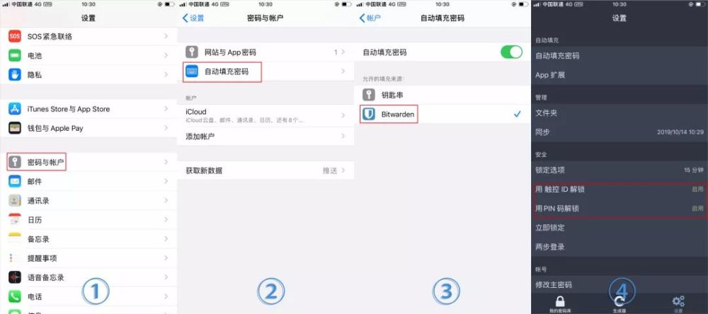 打开“设置 密码和帐户 自动填充密码”,勾选“BitWarden”,同时取消勾选默认自带的“钥匙串”,安卓上的操作方法也类似。