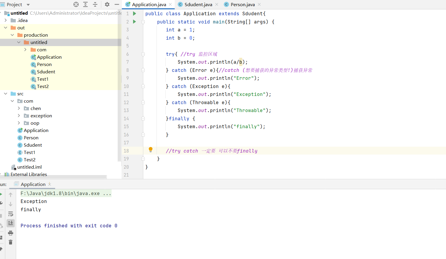 2.捕获异常 (try catch finally) (Ctrl+Alt+T快捷键)