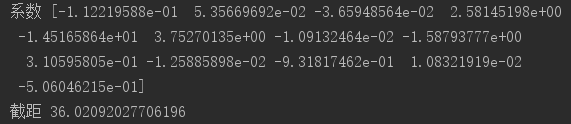 7 print('系数',mlrpro.coef_,"\n截距",mlrpro.intercept_)