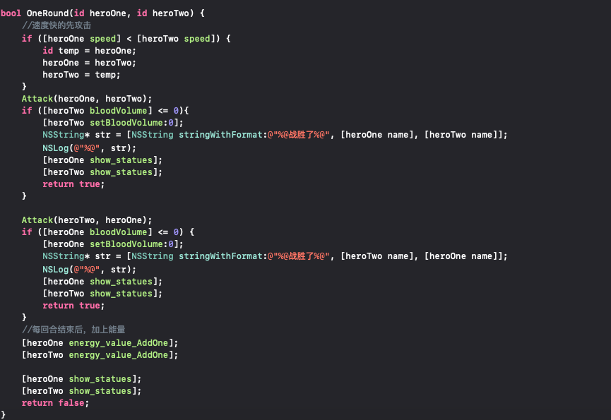 OneRound 单次的战斗,如果有一方血量降为0以下,则结束战斗!回合结束完毕,加上能量后则展示双方状态