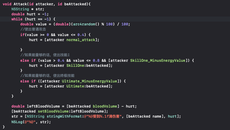 一方英雄攻击一方,按概率使用普通攻击、技能1或者大招(如果能量够,则使用,不然重新选择招数直至伤害不为-1)。然后展示伤害。