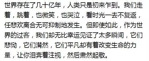 这大概就是我们热爱生命的理由,它来去匆匆,它酸甜苦辣,你所拥有的却是谁也复制不了的美丽人生。