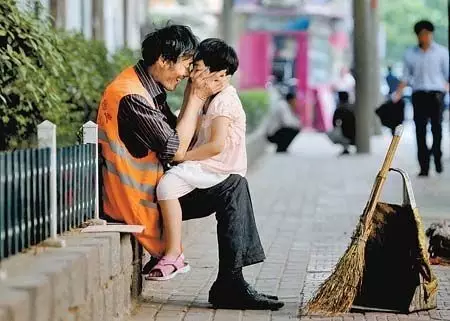 爷爷和坐在膝头的孙女贴脸笑着,相信他看到孩子的时候,一点都不觉得累了。孩子,长大后要好好爱你的长辈,因为他是这个城市里最可爱的人。