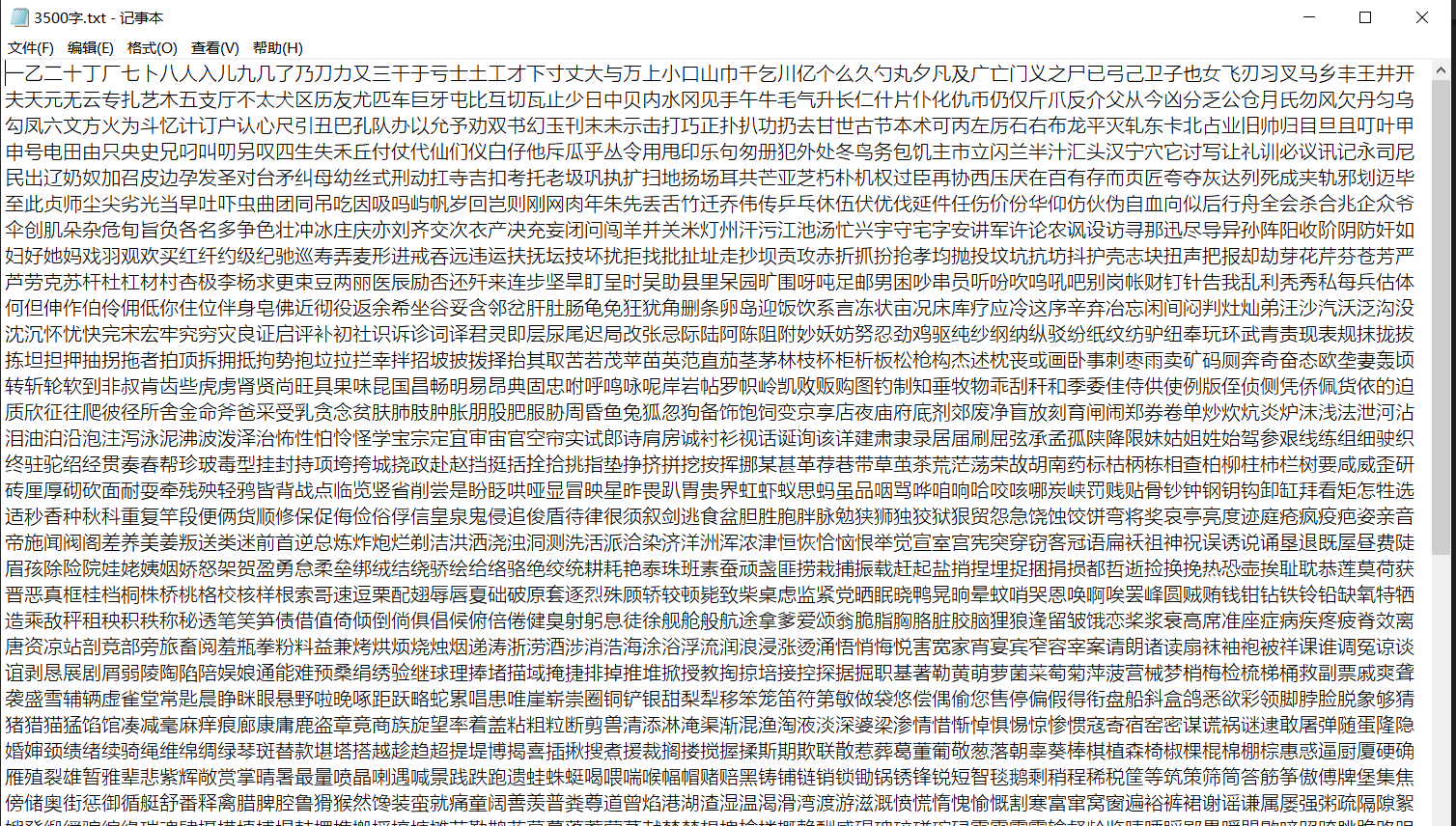 - 到网上找常用字集合,我找了一个3500字集合,做成txt