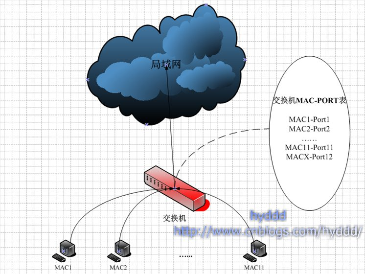 集线器(HUB),它是工作在物理层的设备, 由于它只是工作在物理层的设备,所以它并不关心也不可能关心OSI上面几层所涉及的,它的工作机制流程是:从一个端口接收到数据包时,会在其他端口把这个 包转发一次,因为它不知道也不可能知道这个包是发给谁的(物理层设备只关心电压这些物理概念),它也只能对所有人广播(这里和下文提到的 广播该词的意思和ARP请求时的广播有些不同,这里的广播意思是:使用物理层转发设备,如HUB,导致的广播,可以说这个广播是被逼的,因为设备的问题! 是设备转发包引起的广播!而ARP请求的广播是自己要求的,主动的,因为ARP请求包的目标地址IP是255.255.255.255,但ARP请求的广 播涉及IP层的知识,不在这篇文章讨论的范围,所以这里提到的广播,除非特别说明,否则都是第一个意思,也就说是"因设备转发数据包引起的广播" ),让他们自己处理了。