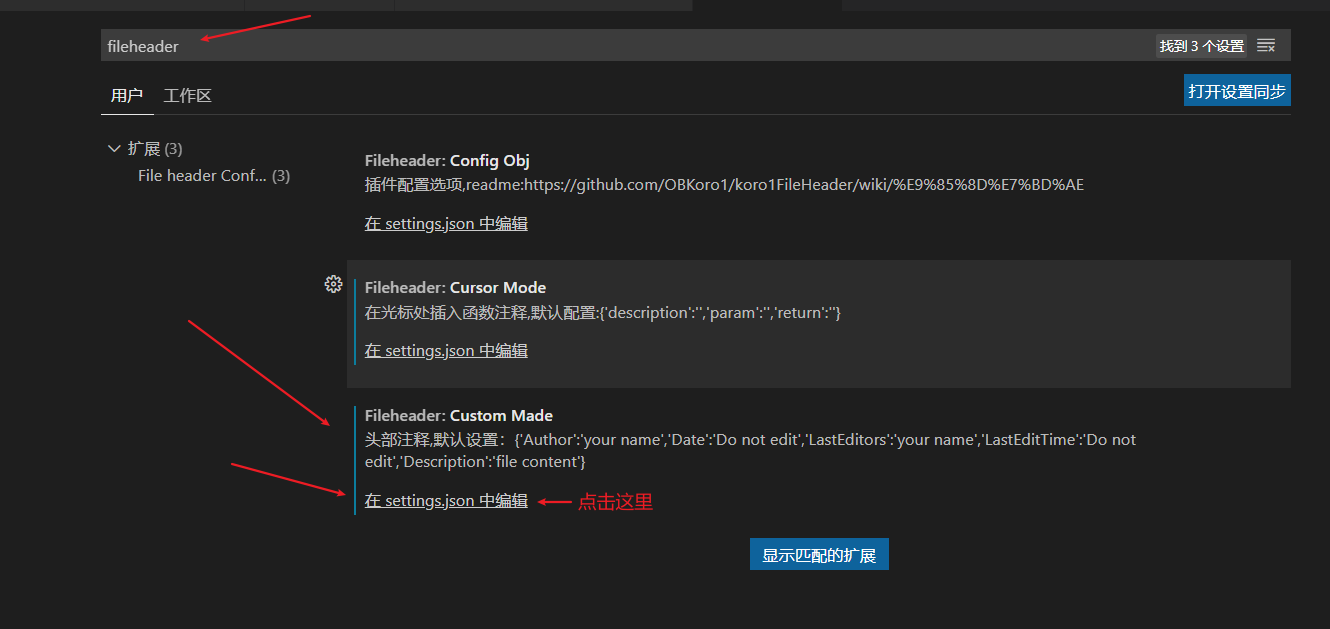然后找到设置 在输入框中输入 "fileheader"