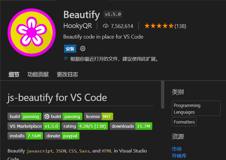 比如:使用 beautify 格式化代码,出现的效果如下: